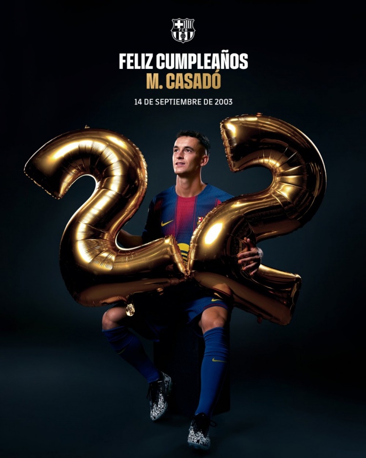 巴萨官方社媒晒出卡萨多的生日海报,配文:“生日快乐,马克(卡萨多)!”