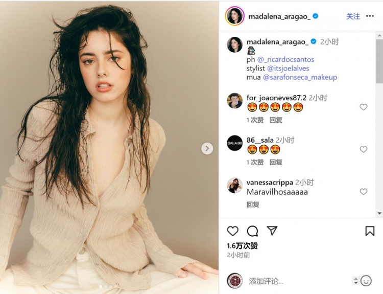 年少 甜美!若奥-内维斯演员女友社媒发布写真照片