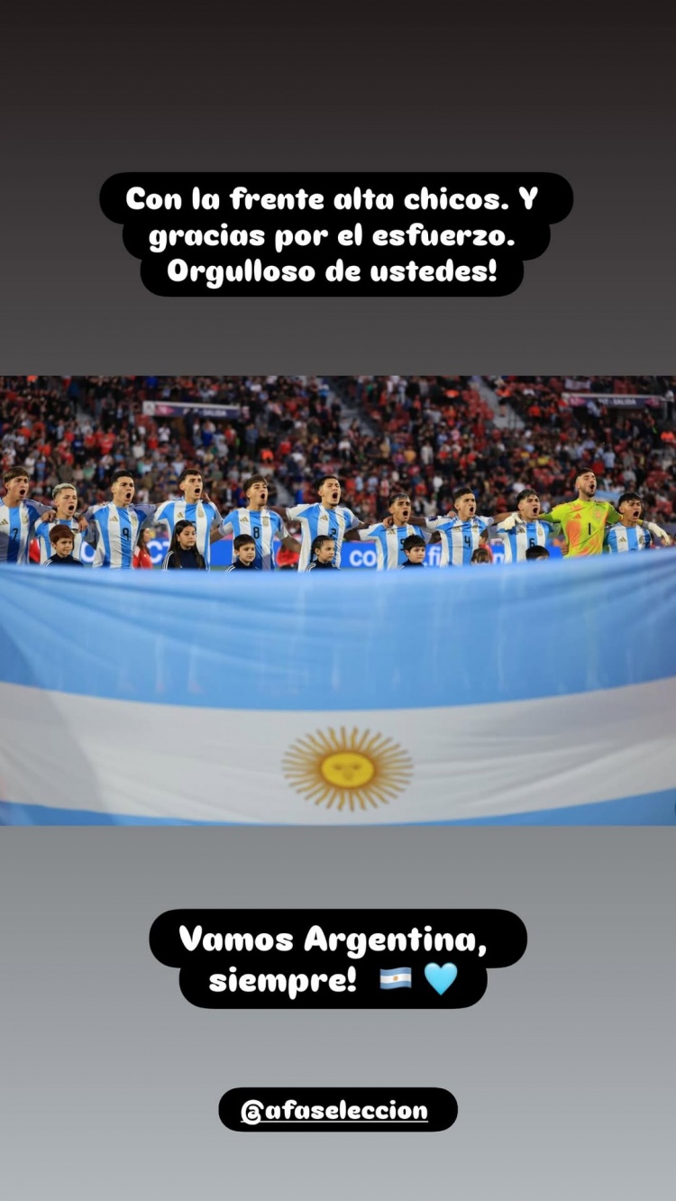 阿圭罗社媒鼓励阿根廷U20小将,他写道:“小伙子们,西甲赛场抬头挺胸,感谢你们的努力,我为你们感到骄傲。阿根廷助威 ,永远!”