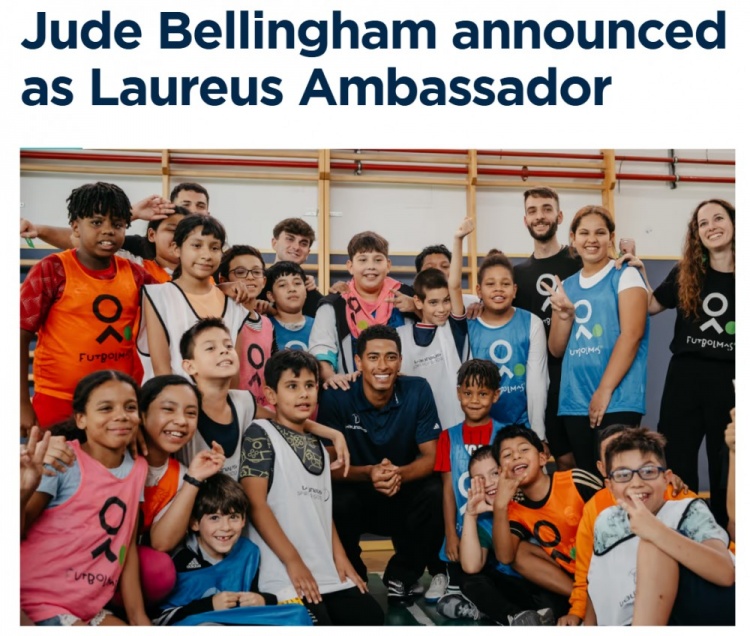 在贝林厄姆接受肩部手术后重返赛场的这一周,这位世界足坛最耀眼的球星开启了他故事的新篇章——以大使身份加入劳伦斯体育公益组织。