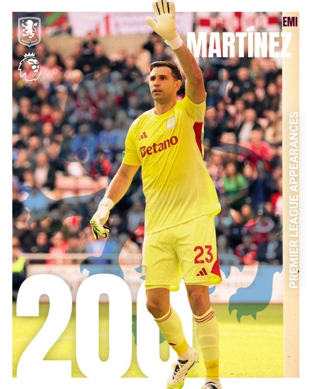英超第6轮,维拉主场作战 对阵富勒姆,33岁阿根廷守门员大马丁内斯杆位出战迎来英超200战里程碑。