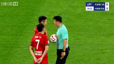 天津津门虎vs河南全场共有7人染黄,河南两人因抗议吃到警告