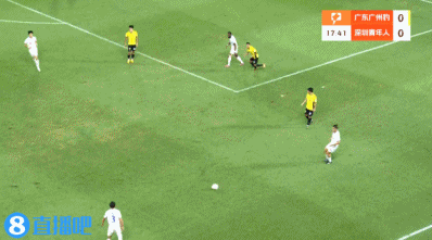 第17分钟,广州豹左路底线传高球,夏达龙后点顶球没能顶到。↓