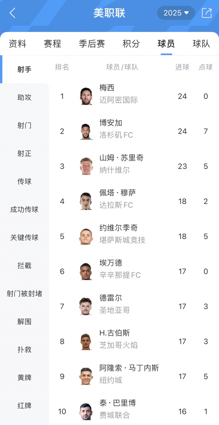 追平梅西!洛杉矶FC前场球员博安加攻入第24球,MLS射手榜并列第一