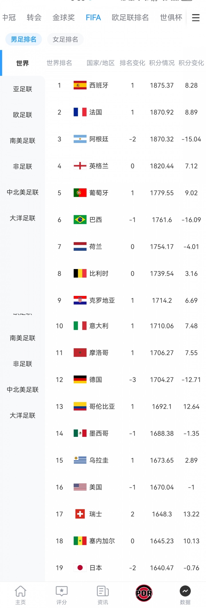 巴西排名第6!日本目标世界杯赛 第一名 前18名谁能稳赢第19的日