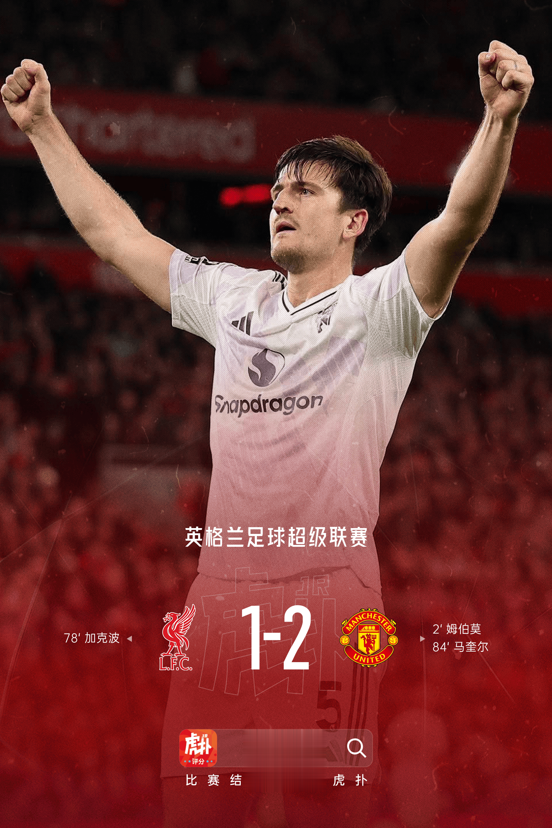 虎扑10月19日讯英超第八轮,利物浦1-2曼联,马奎尔致胜球 。