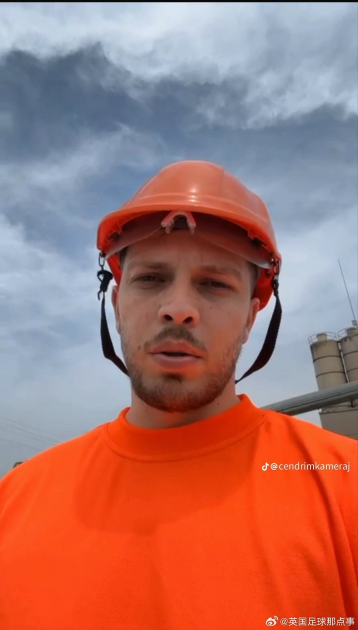 【从与C罗一起练习 到建筑工人】26岁的前职业球员卡梅拉伊(Çendrim Kameraj)最近晒出两张照片,一张是2018年他效力尤文时与C罗的合影,另一张是现在头戴安全帽在工地搬砖的自己。