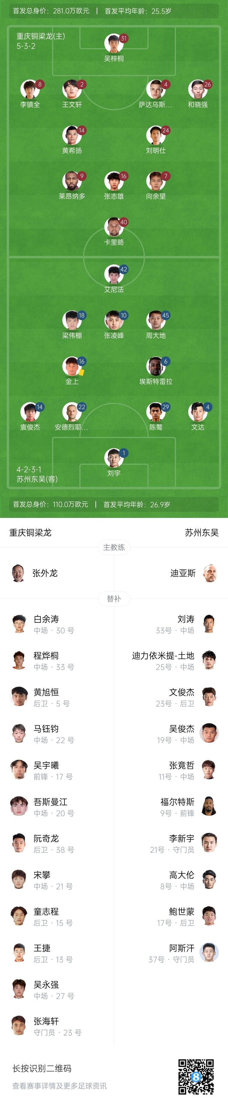 半场-重庆铜梁龙0-0苏州东吴 重庆实时积分被广州豹追平